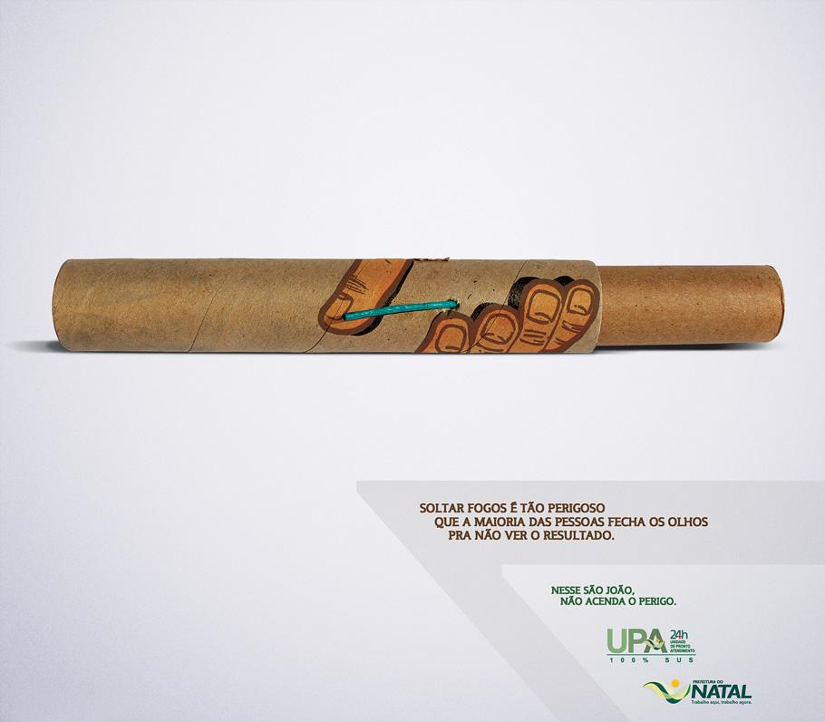 Títulos inspirados e layout inteligente para uma campanha contra o uso de fogos de artifícios nos festejos juninos, da agência Art&C Comunicação, do Rio Grande do Norte, para a prefeitura de Natal.